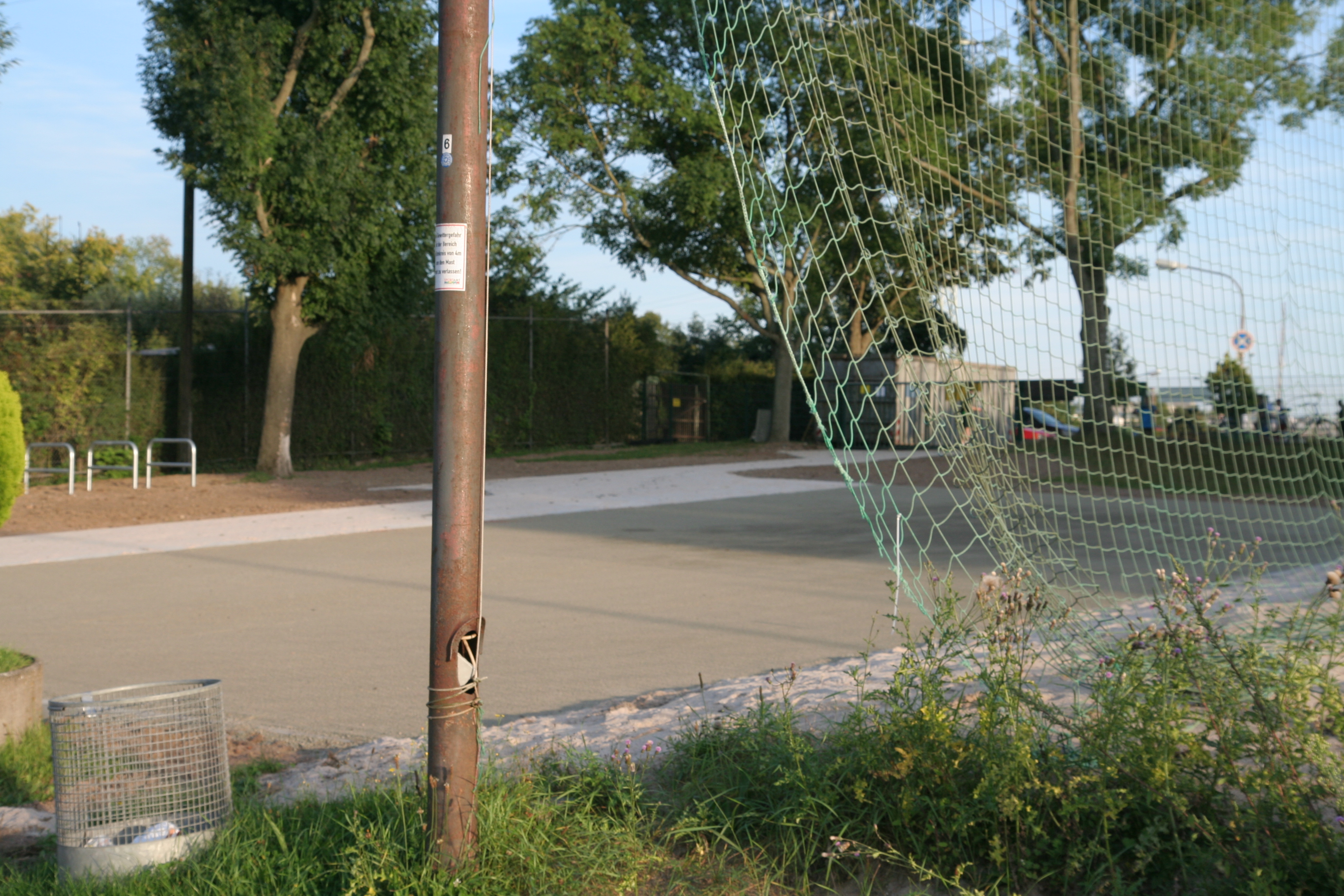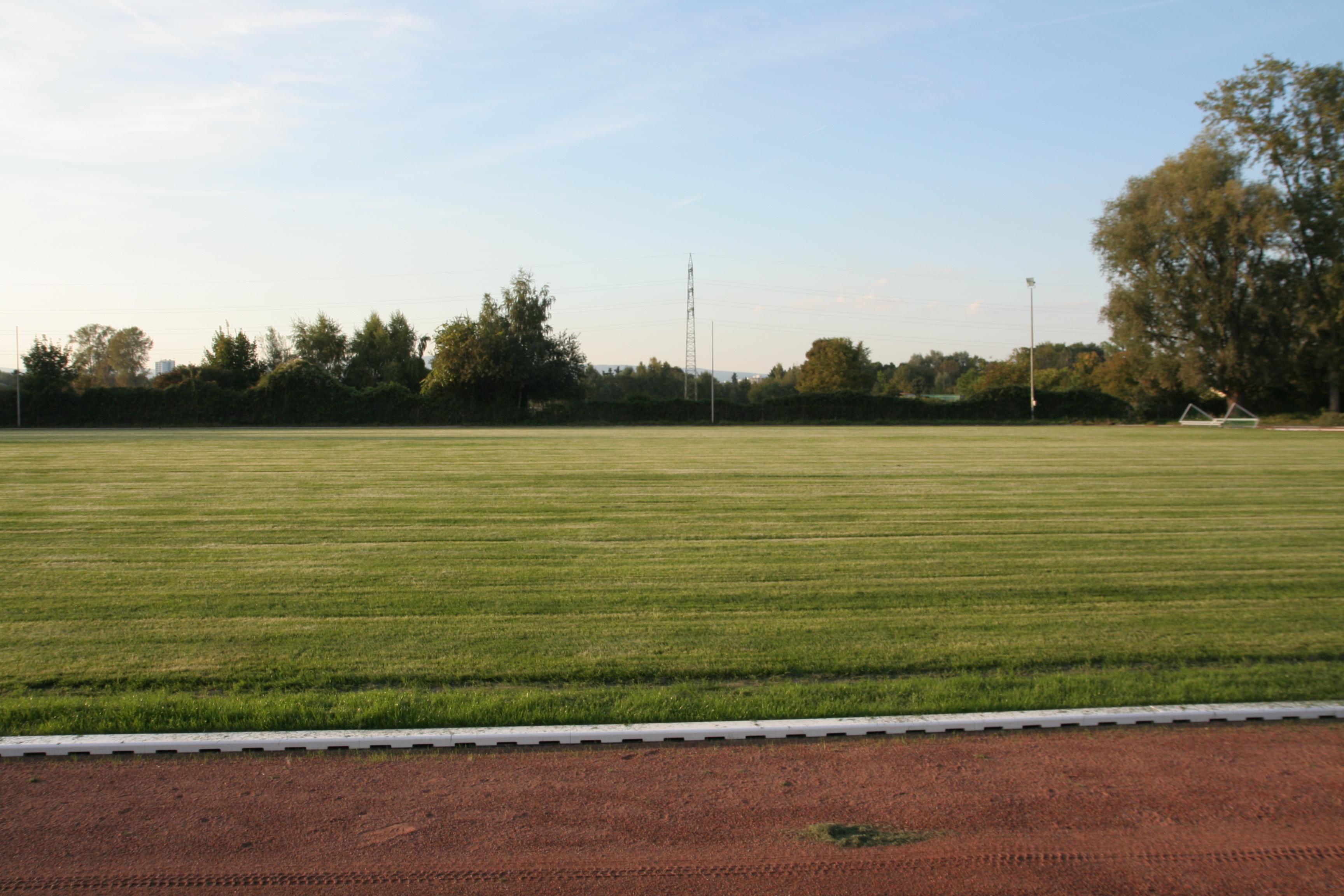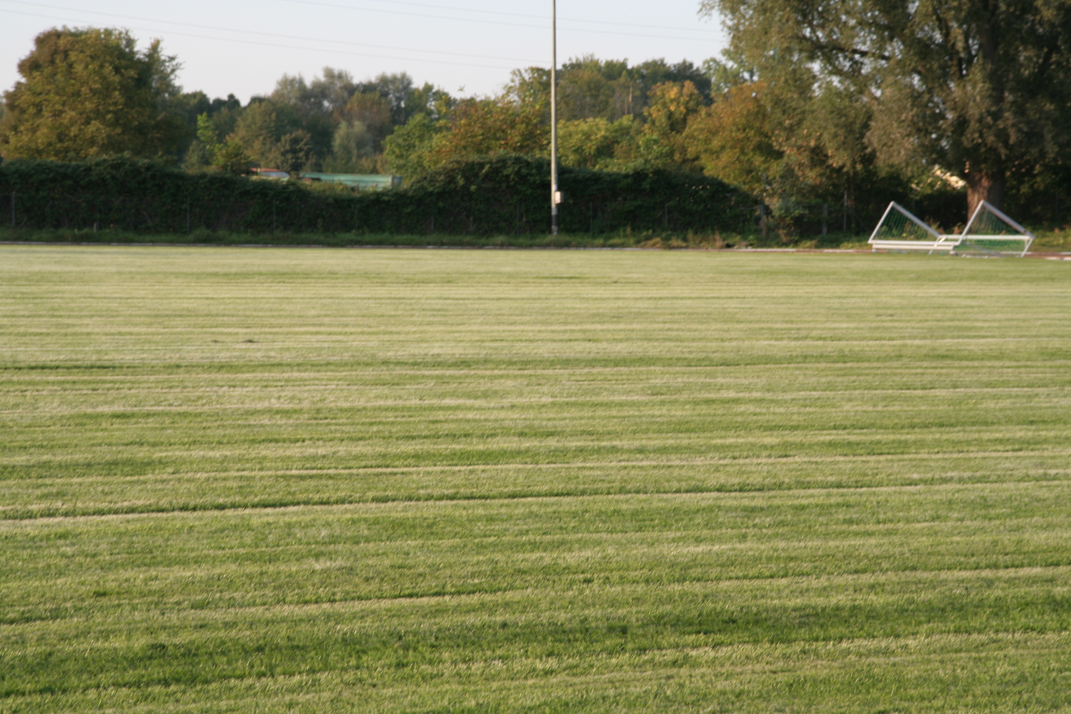 Die Bauarbeiten scheinen abgeschlossen zu sein. Der Sportplatz bleibt allerdings vorerst noch gesperrt, der Rasen braucht noch Ruhe.