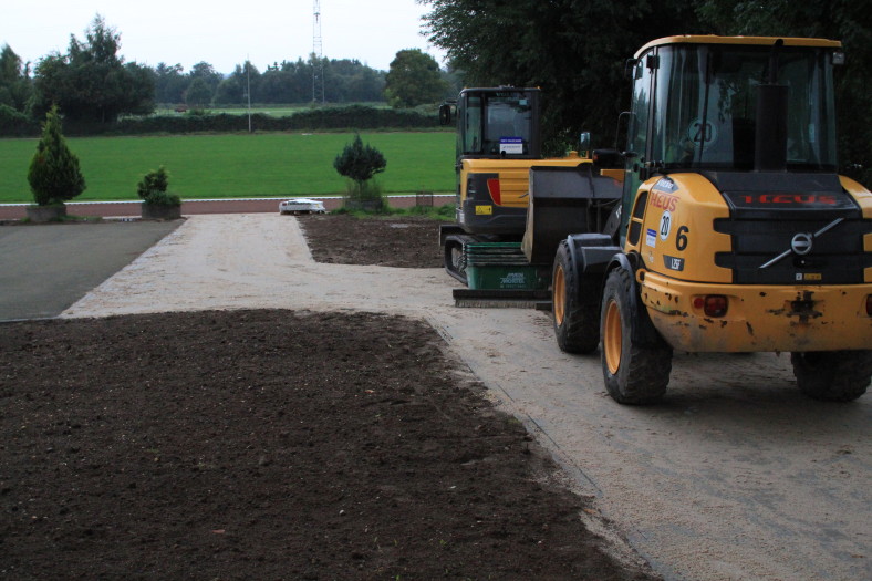 An der Zufahrt zum Sportplatz wird weiter fleißig gearbeitet. Zwischenzeitlich hat der Anlauf zur Weitsprunggrube einen neuen Belag bekommen. Das sieht richtig gut aus.