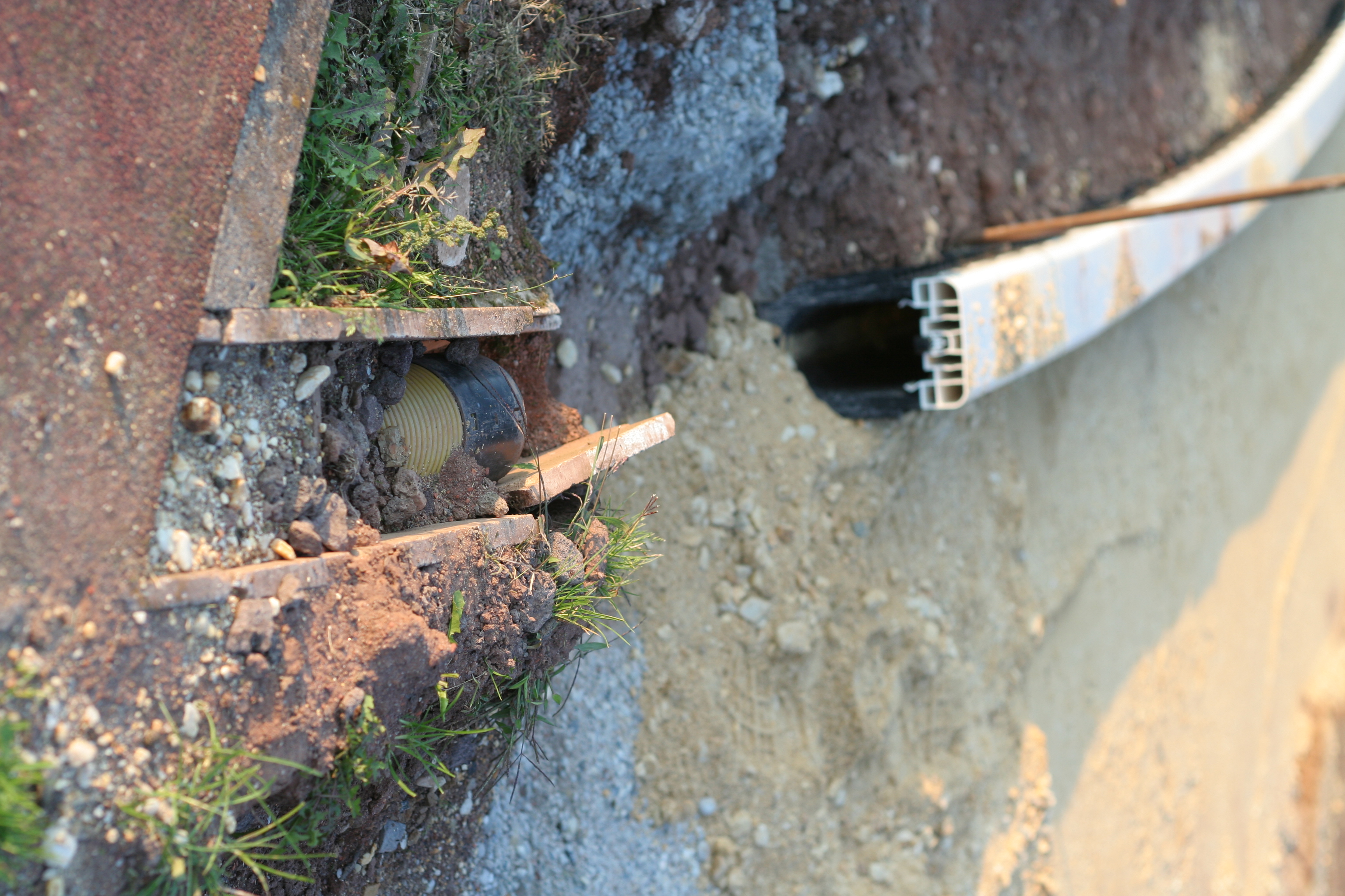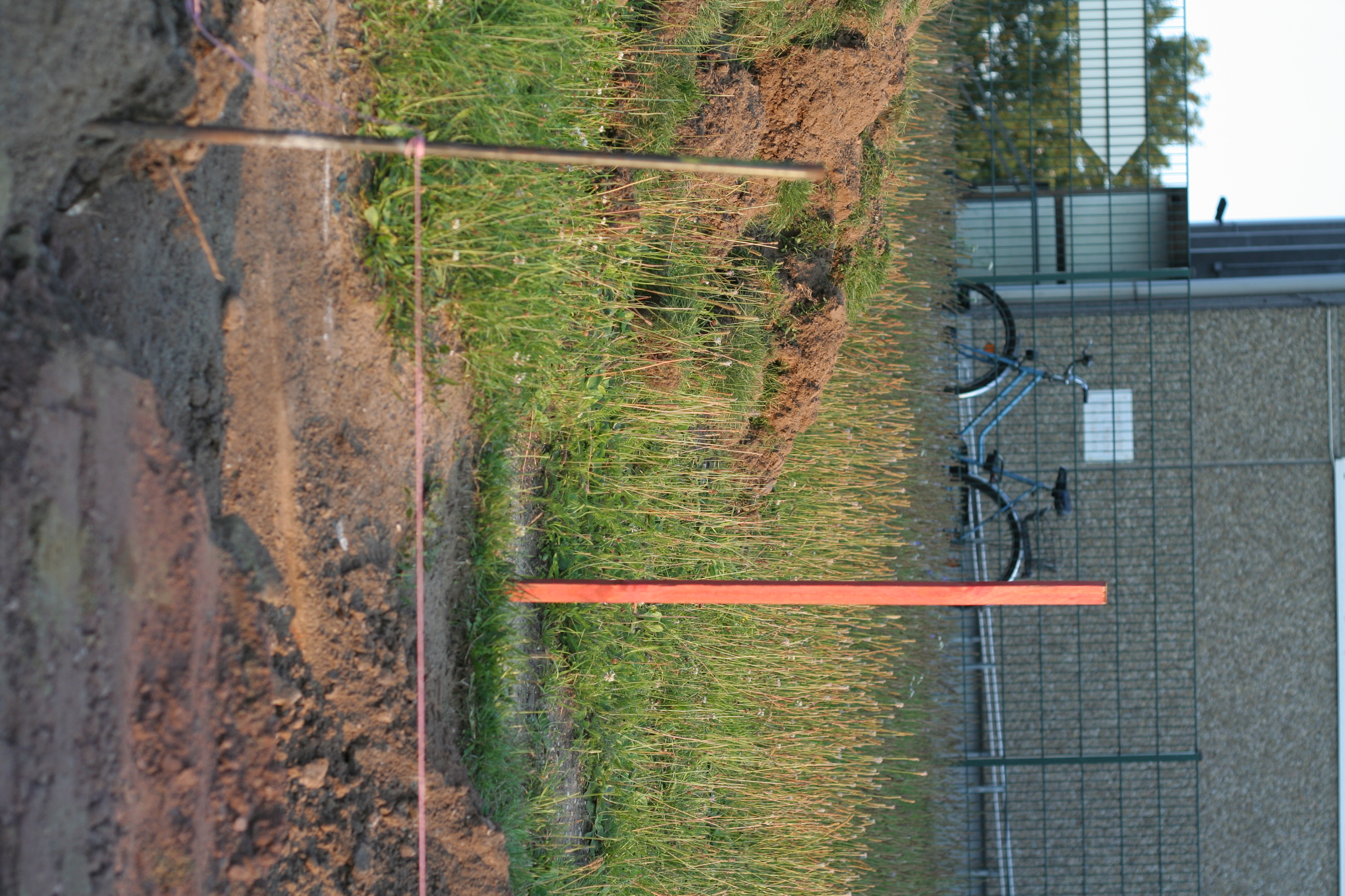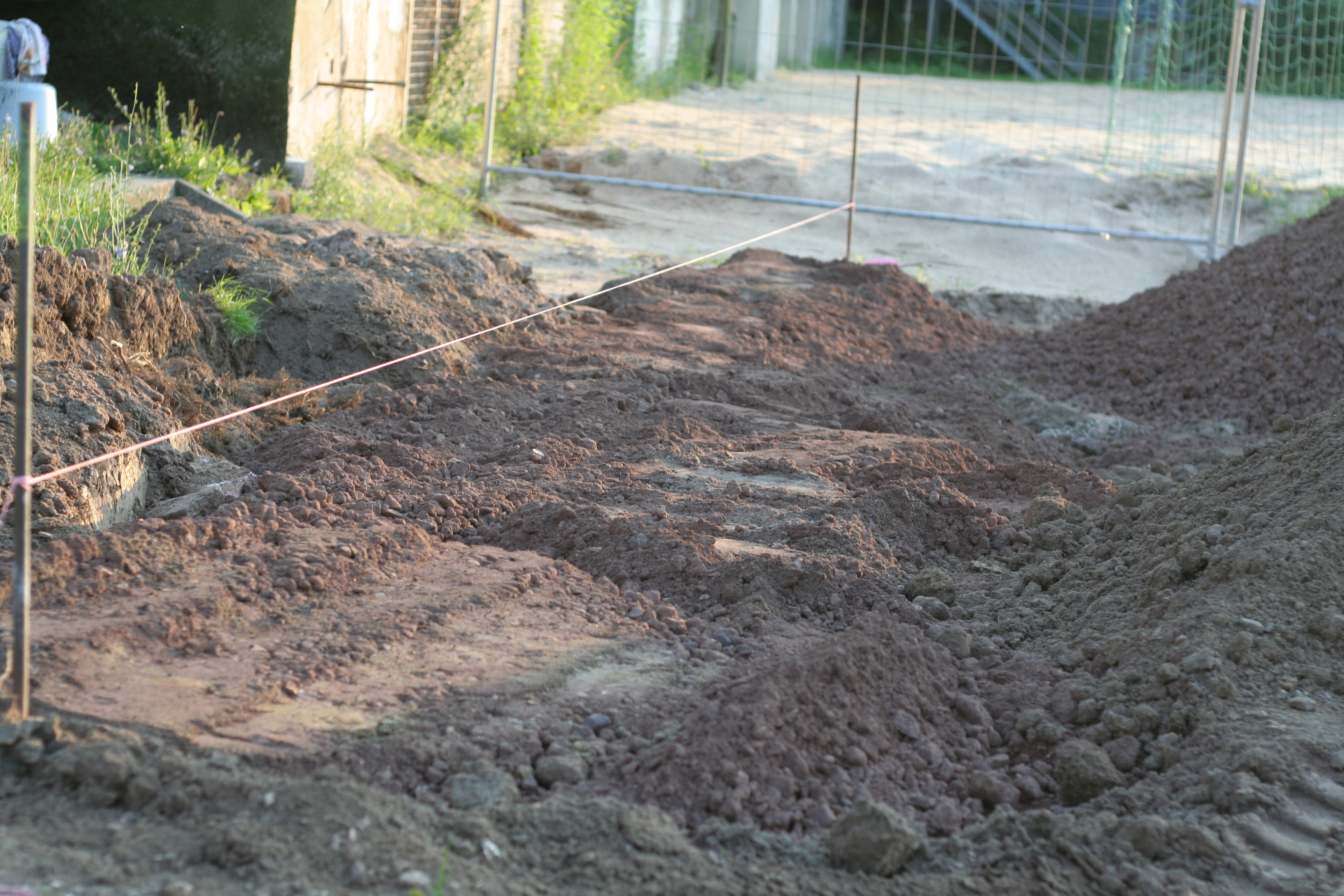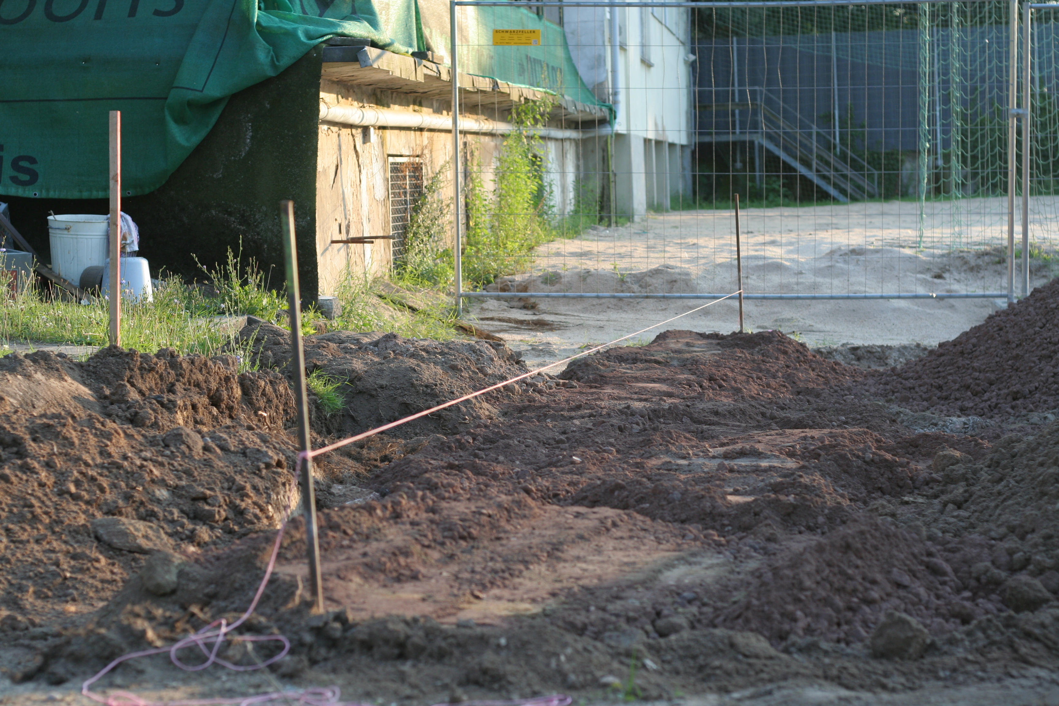 Die Arbeiten an der Drainage sind an einem großen Bereich der Bahn fast fertig. Lediglich der Bereich am Anlauf für die Weitsprunggrube ist bisher noch gar nichts verändert wurden.