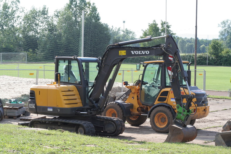 „Montag gehts los“, wurde versprochen, und tatsächlich: Die Baumaschinen sind da. Das Gelände wurde rund herum abgesperrt. Einige Bauzäune stehen bereit. Etwas Material wartet auf seinen Einsatz. Morgen geht es dann wohlrichtig los.