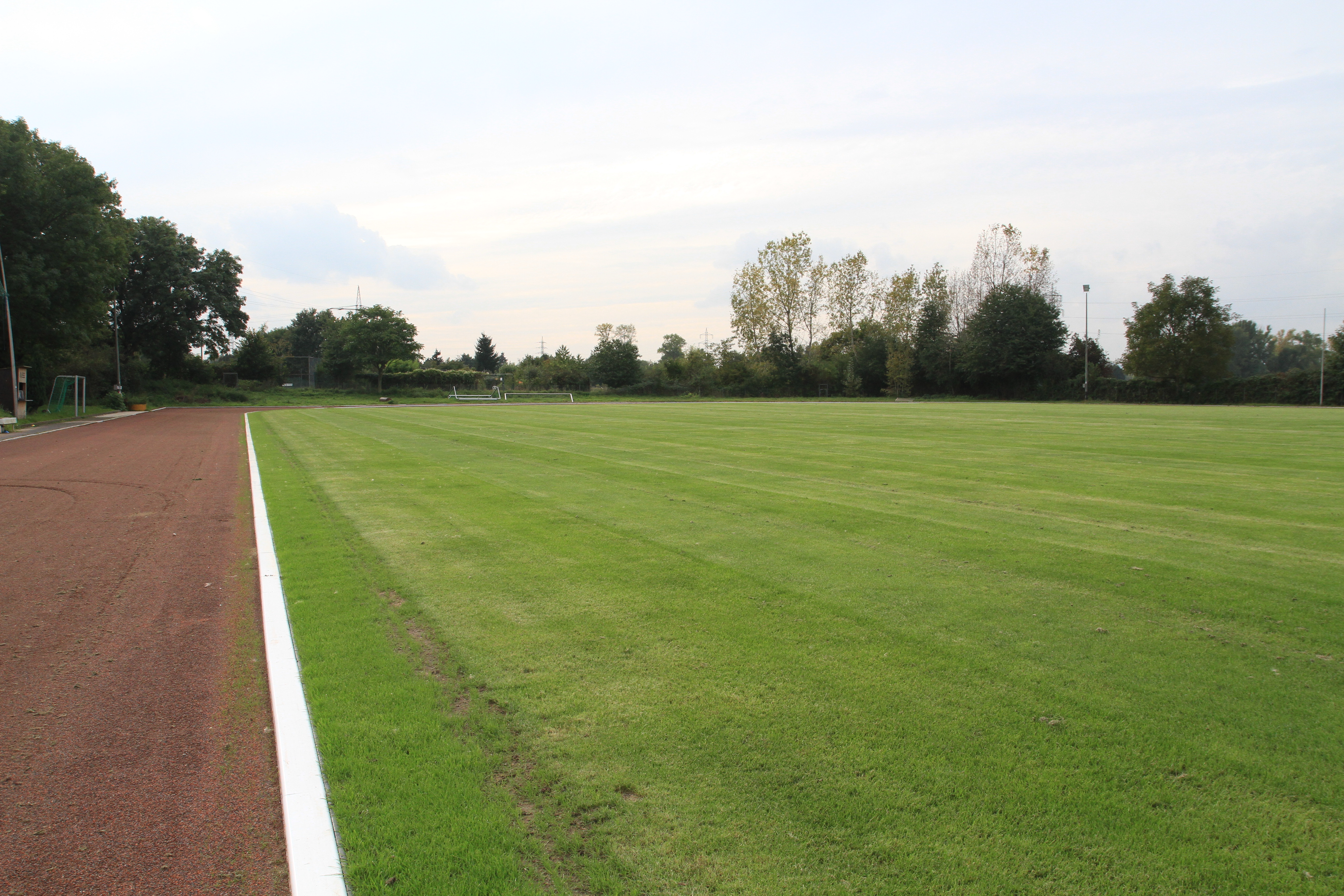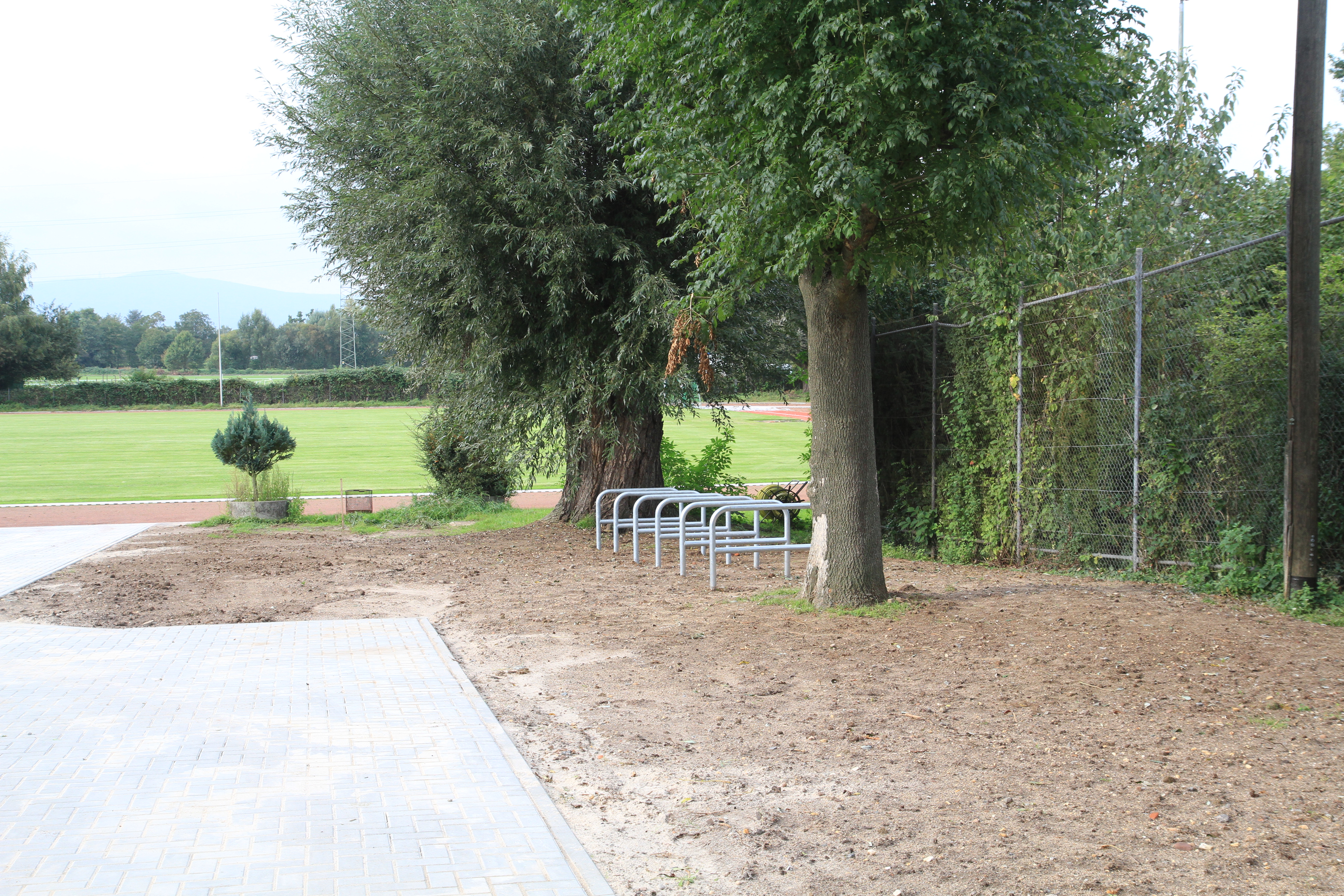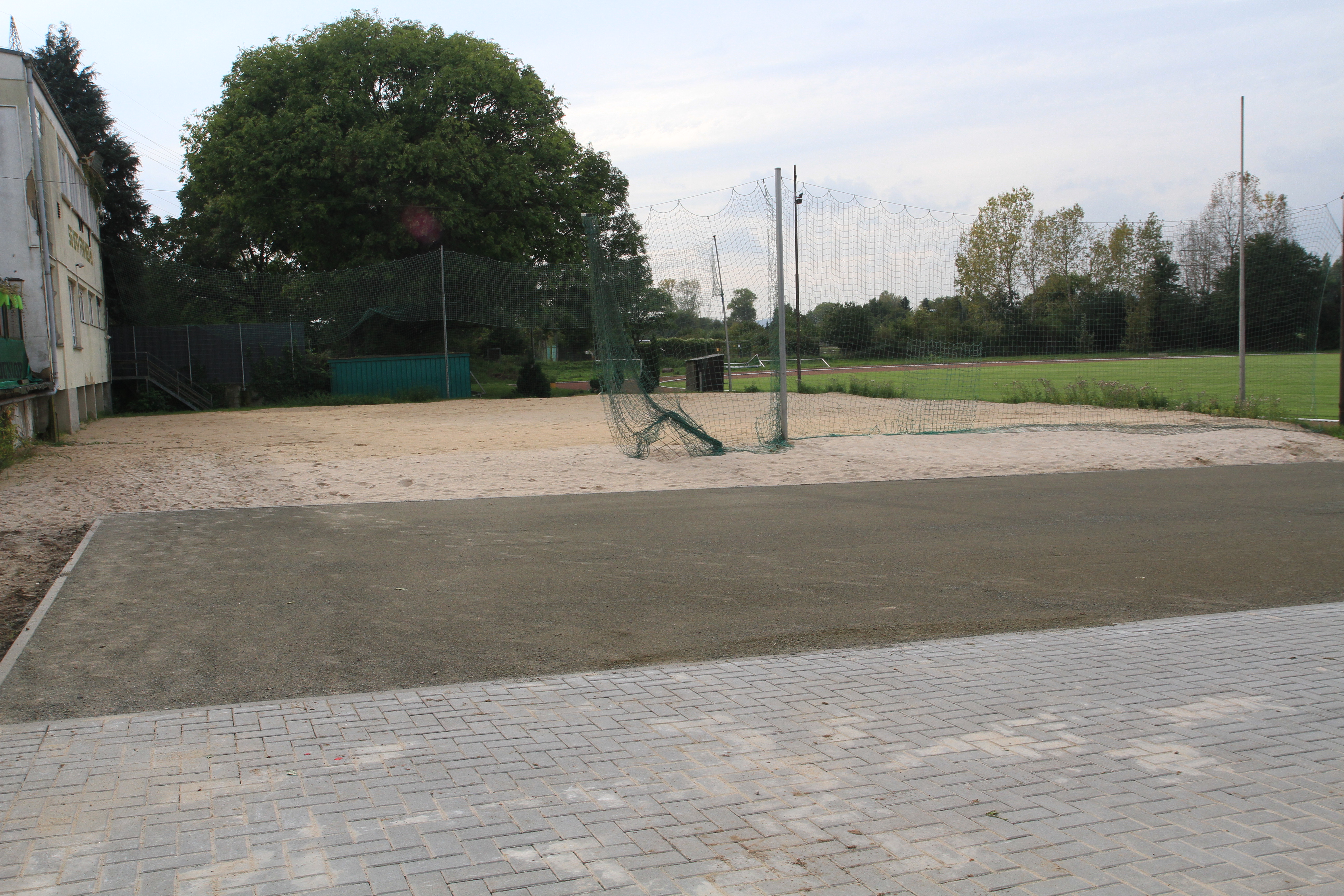 Die Bauarbeiten scheinen abgeschlossen zu sein. Der Sportplatz bleibt allerdings vorerst noch gesperrt, der Rasen braucht noch Ruhe.