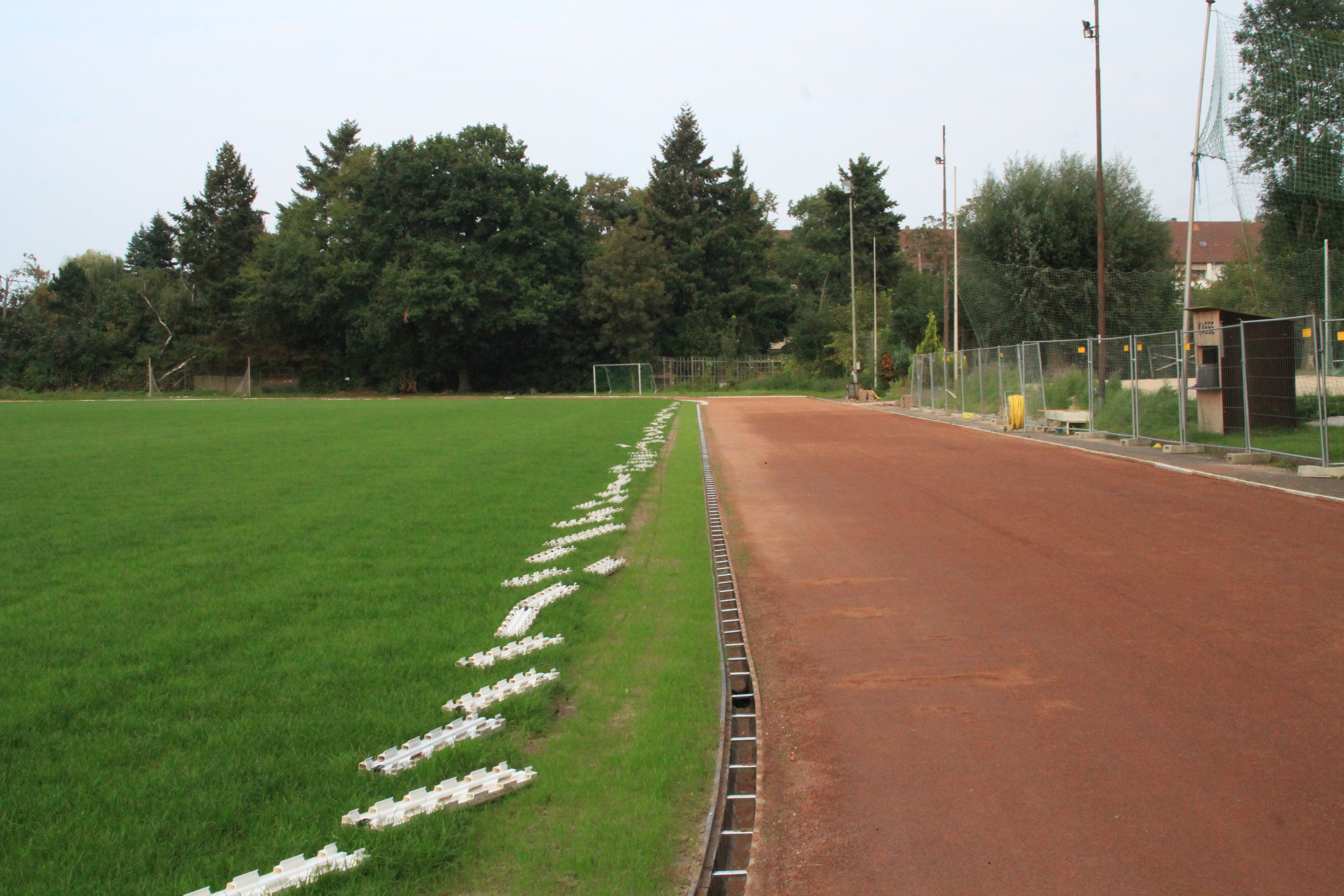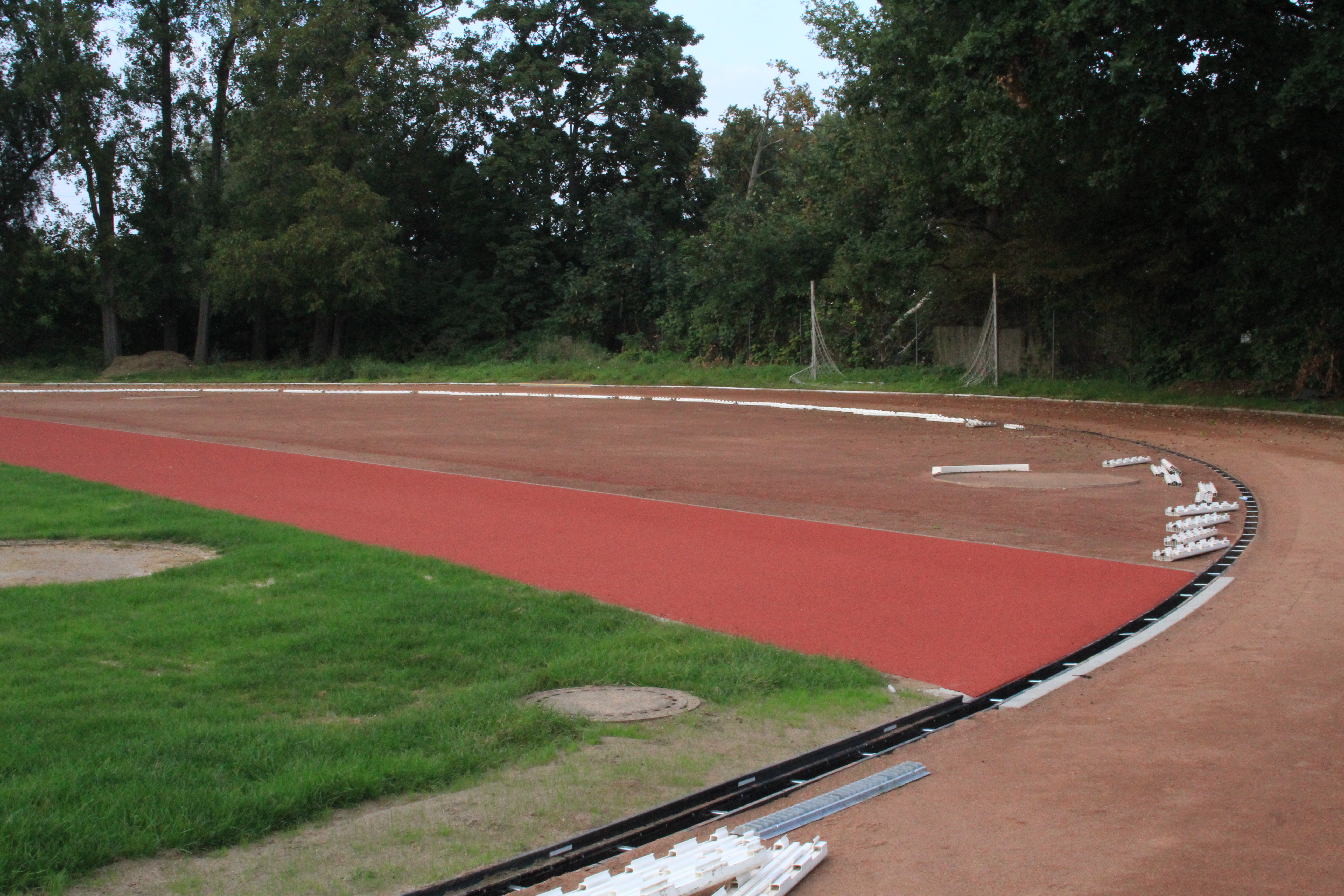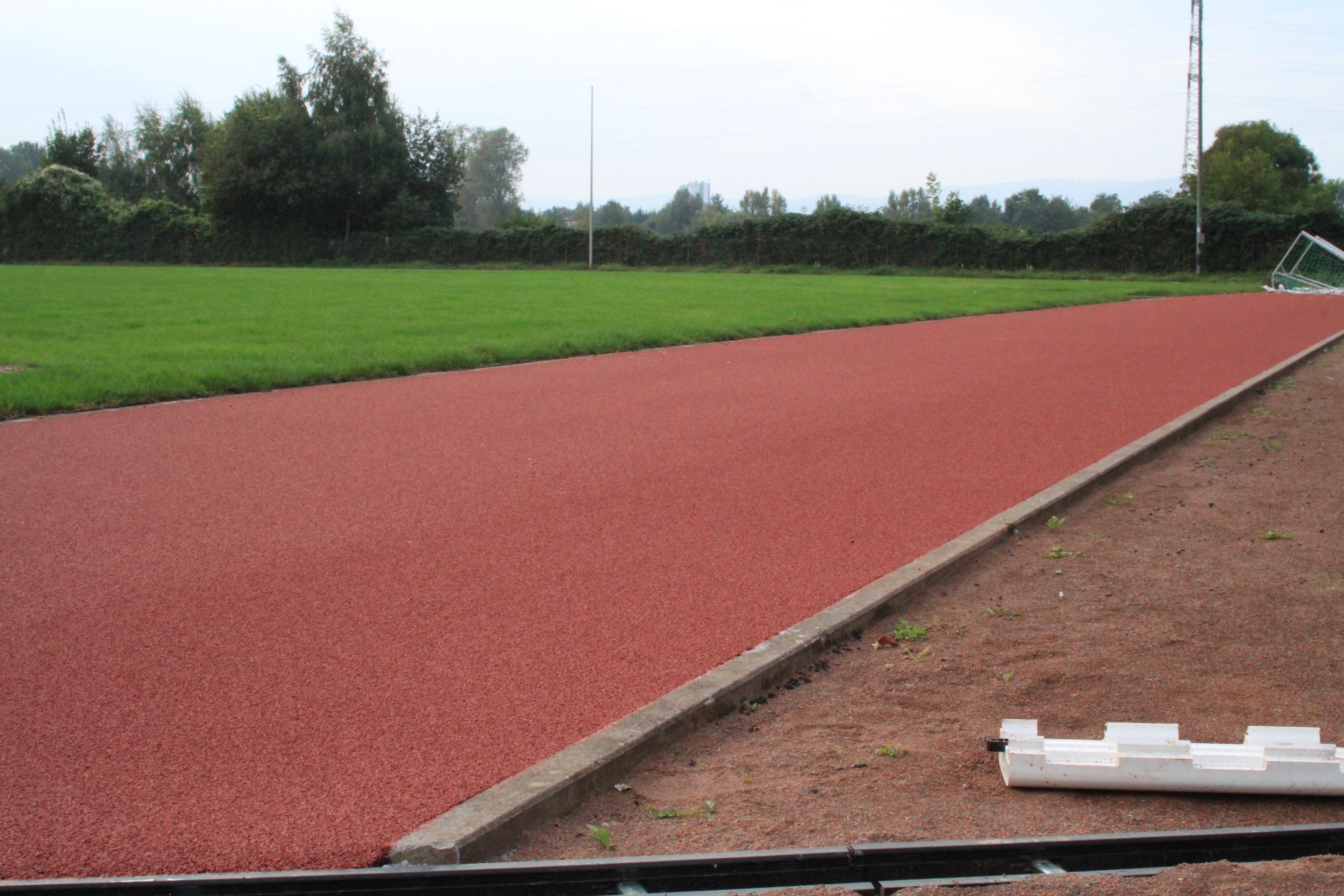 An der Zufahrt zum Sportplatz wird weiter fleißig gearbeitet. Zwischenzeitlich hat der Anlauf zur Weitsprunggrube einen neuen Belag bekommen. Das sieht richtig gut aus.