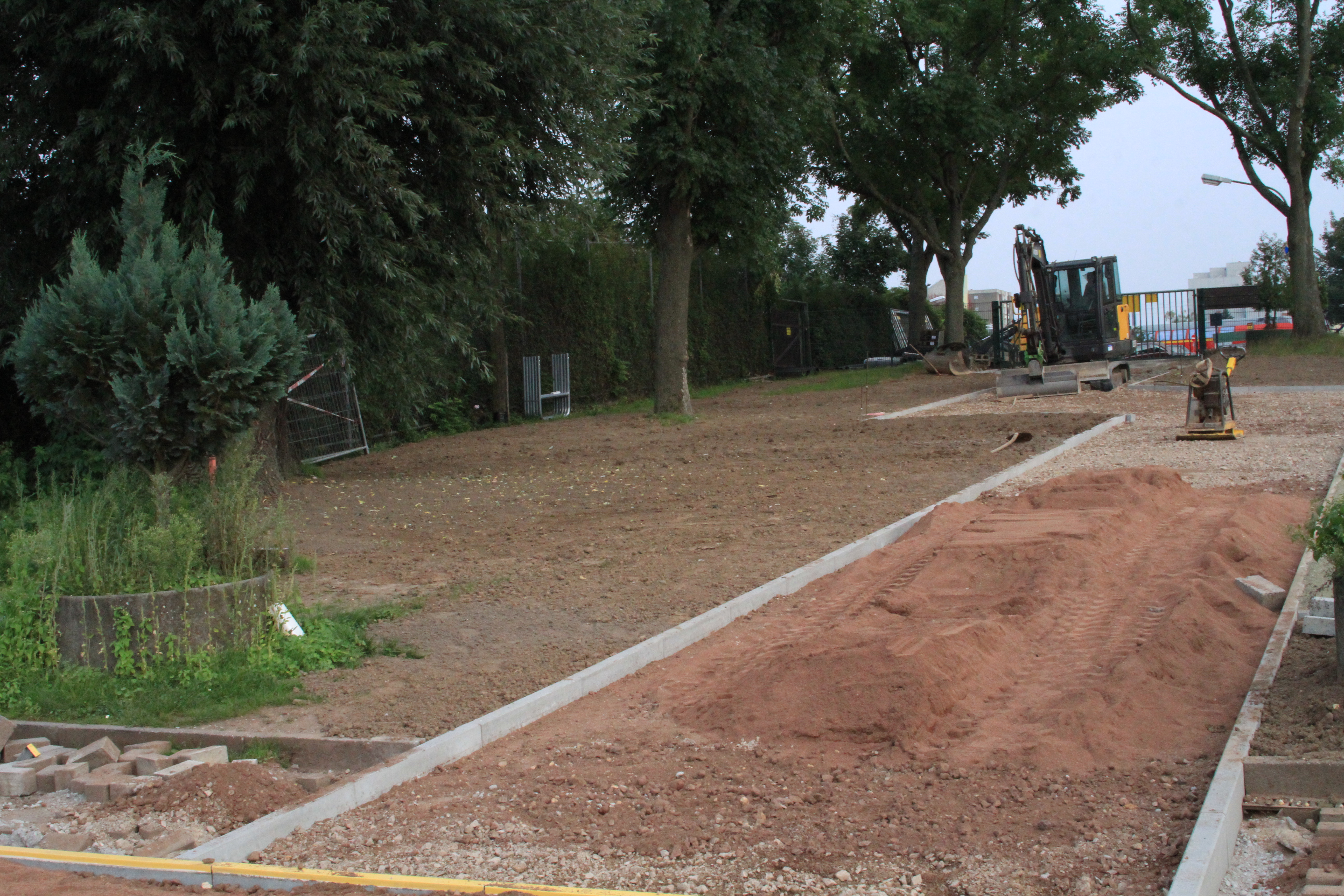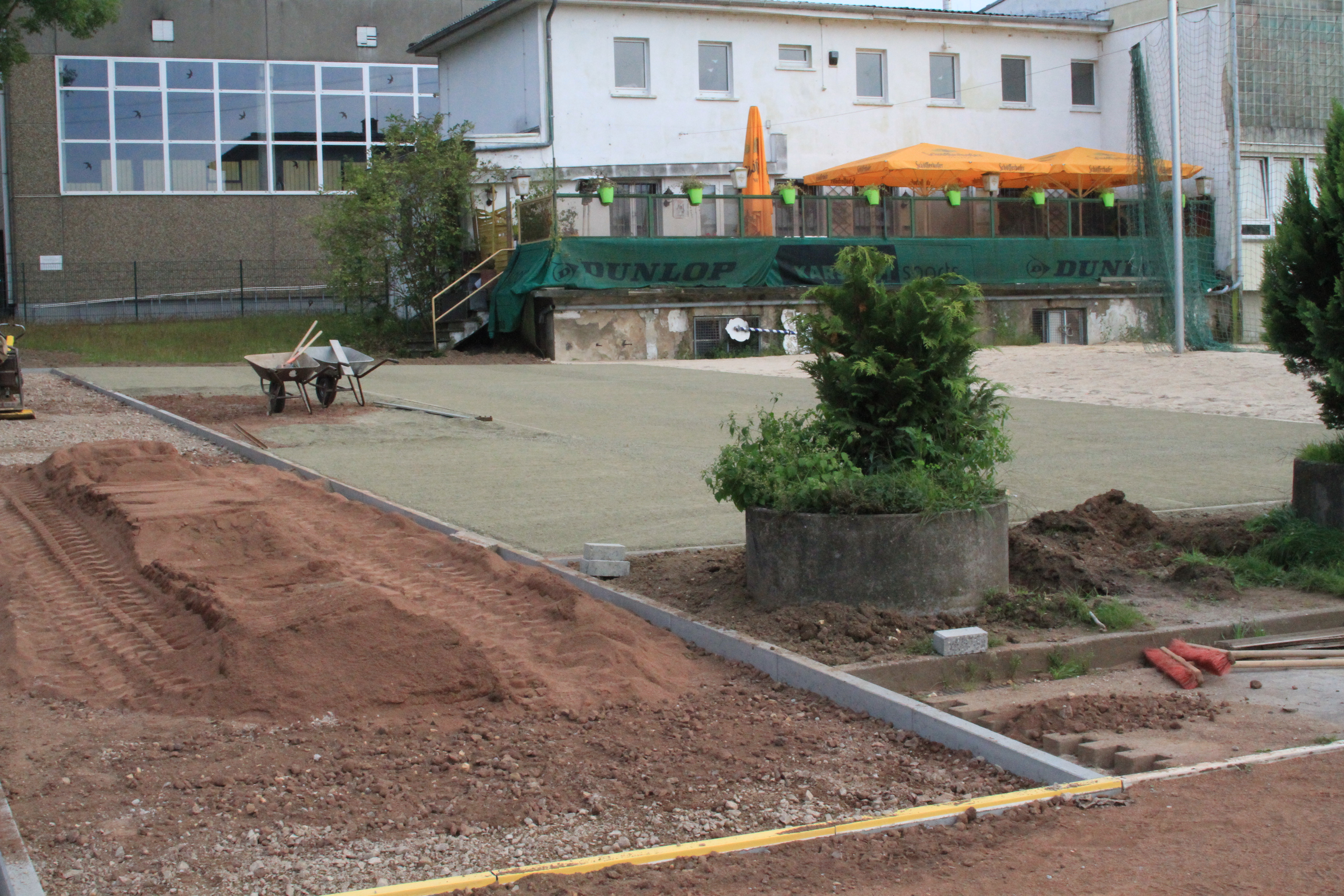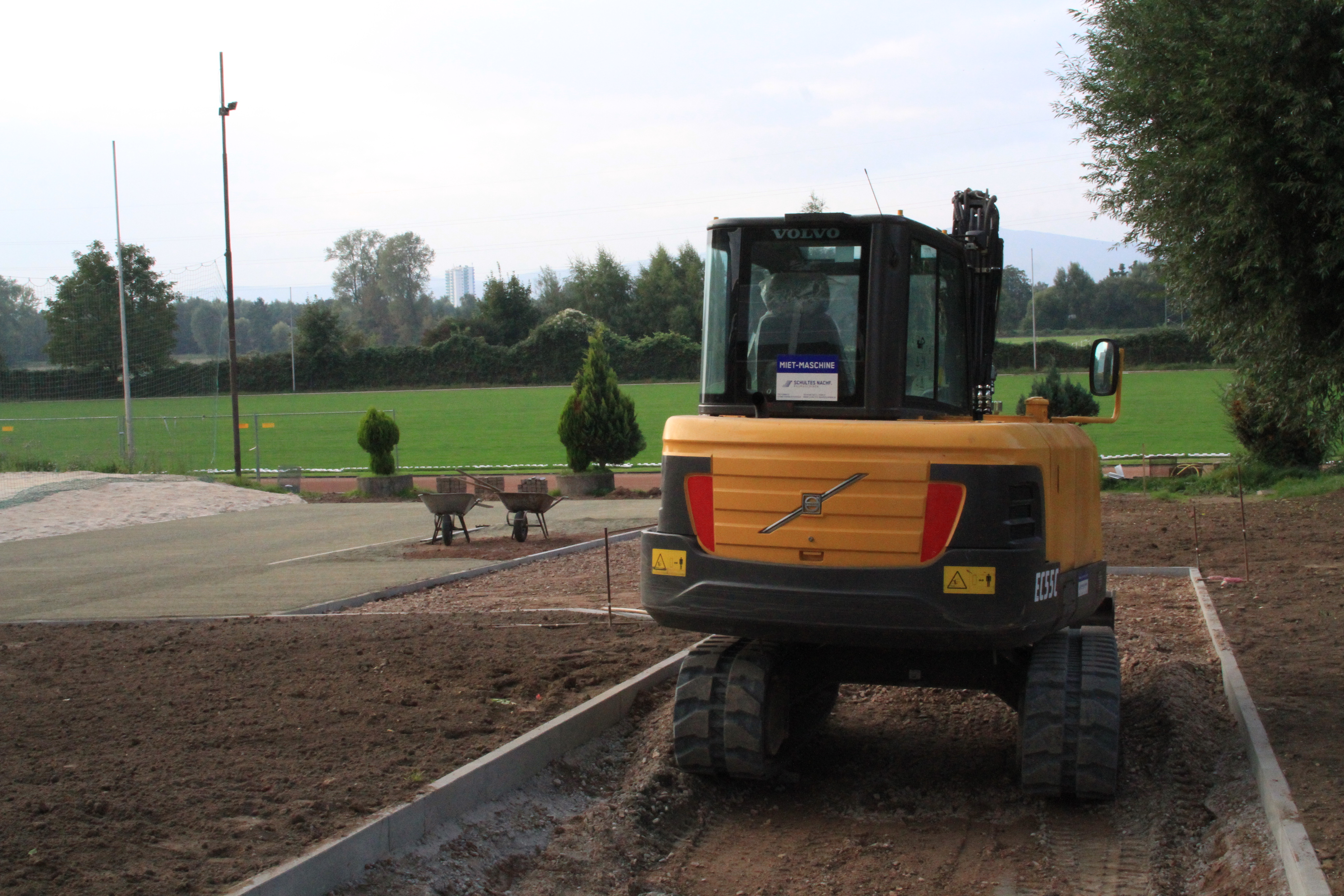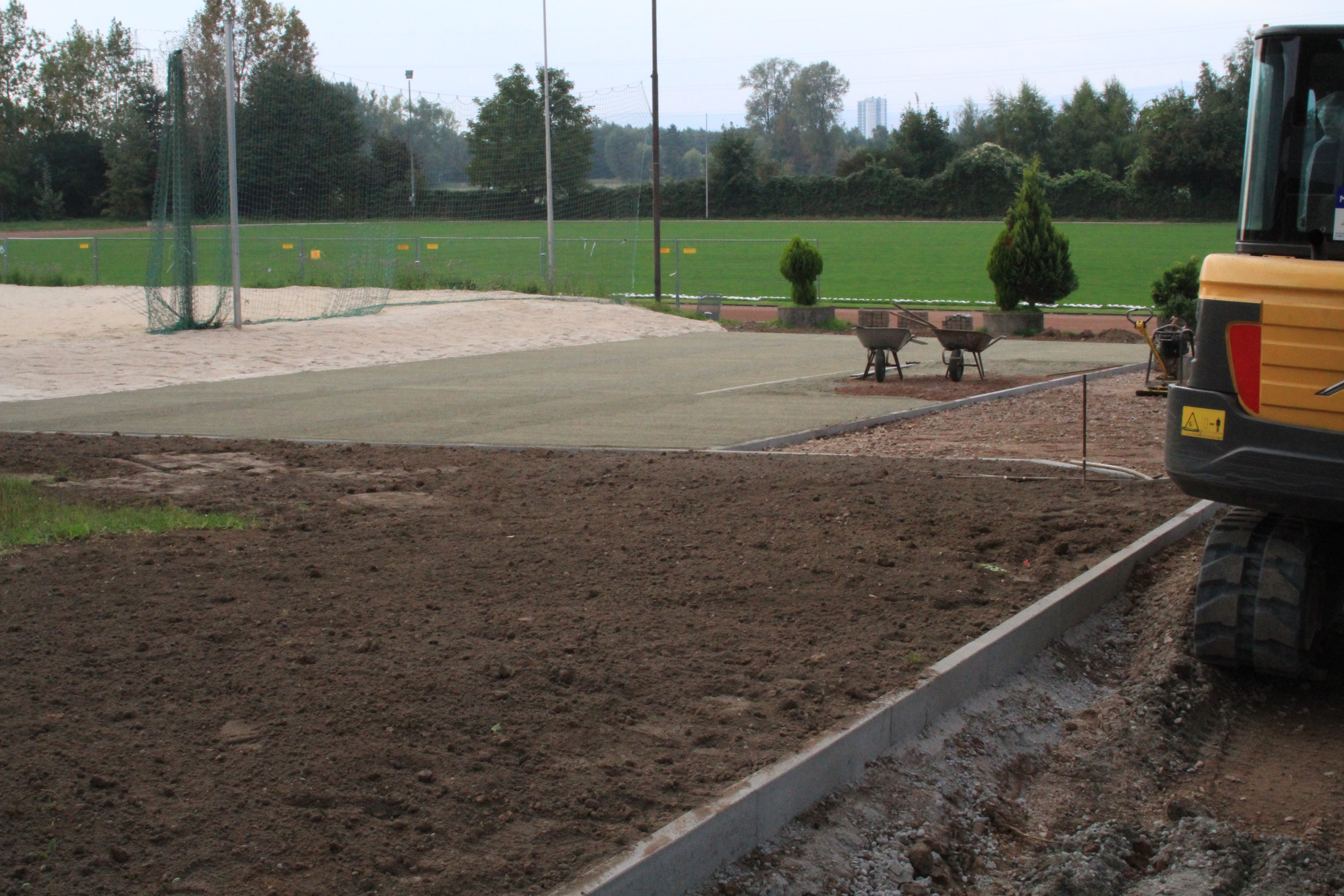An der Zufahrt zum Sportplatz wird weiter fleißig gearbeitet. Zwischenzeitlich hat der Anlauf zur Weitsprunggrube einen neuen Belag bekommen. Das sieht richtig gut aus.